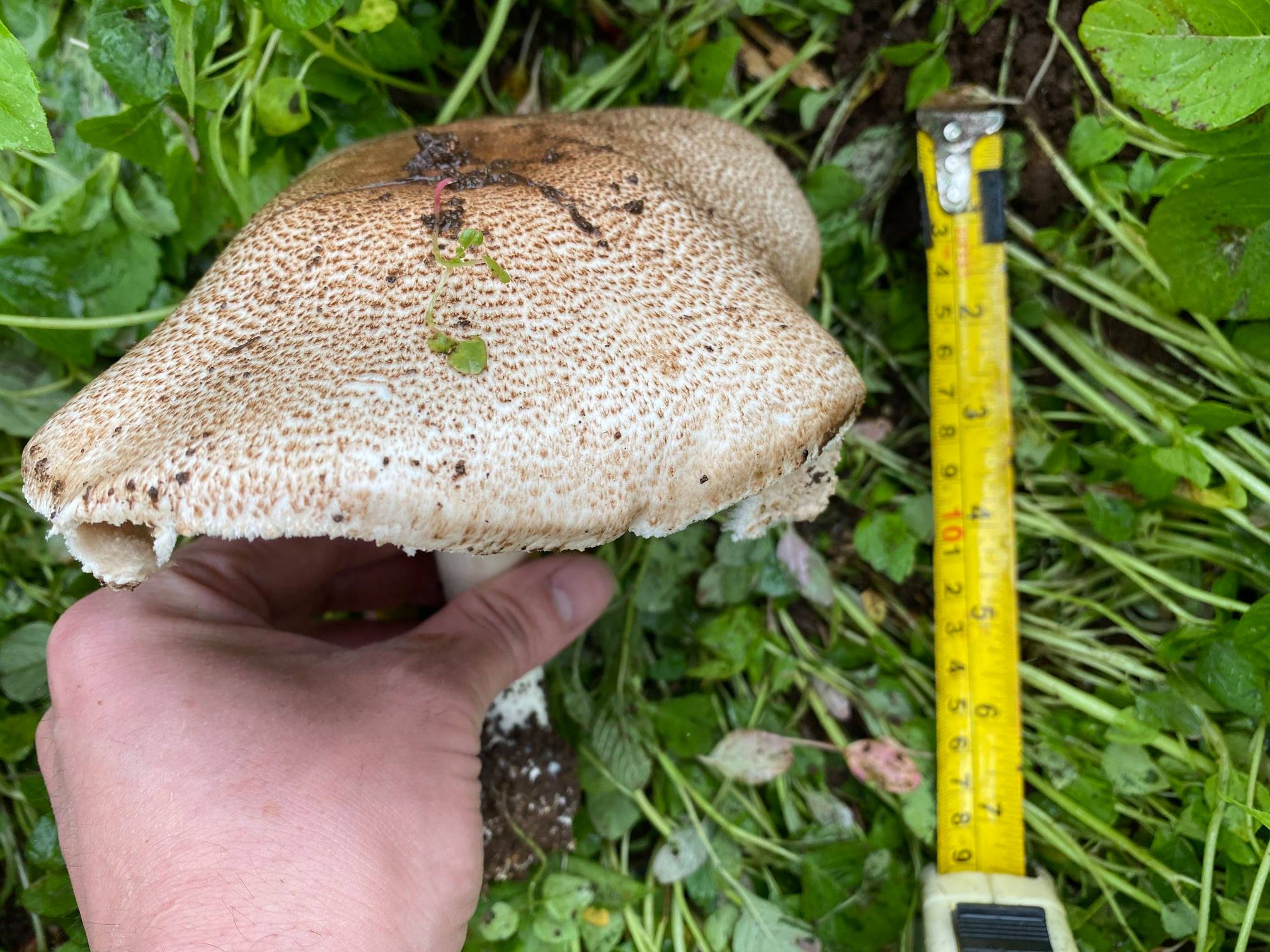 (収穫したキングアガリクスの中には20㎝位の大きさにまで育ったものもありました)